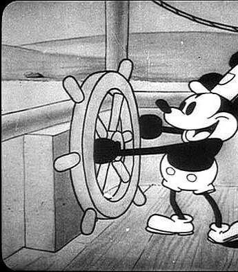 Мультфильм Пароход Уилли 1928 раскрывает историю в сюжетной линии как Микки Маус стоит за штурвалом, управляя пароходом, плывущим по реке, и представляет себя капитаном. Он насвистывает веселую мелодию, но вскоре появляется...