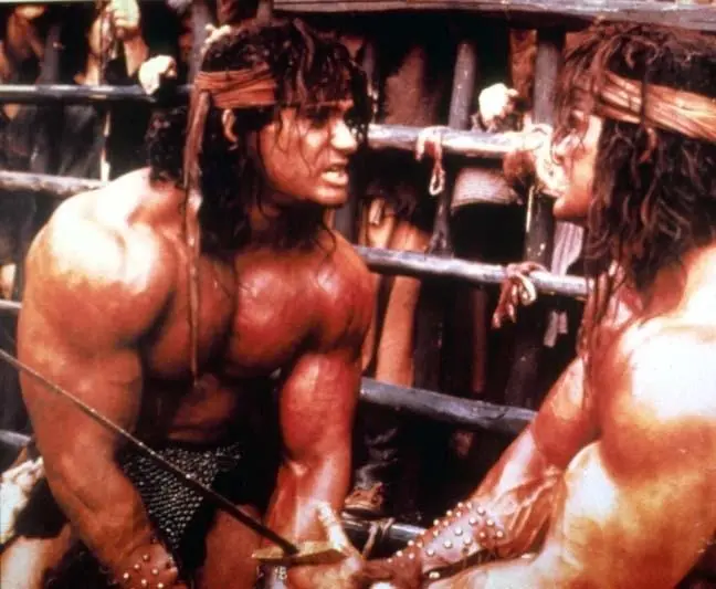 Фильм Варвары 1987 раскрывает историю в сюжетной линии как В древние времена из одного племени украли двух новорожденных близнецов. Они выросли весьма здоровыми мордоворотами, поняли, что служат не тому делу, и встали...