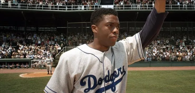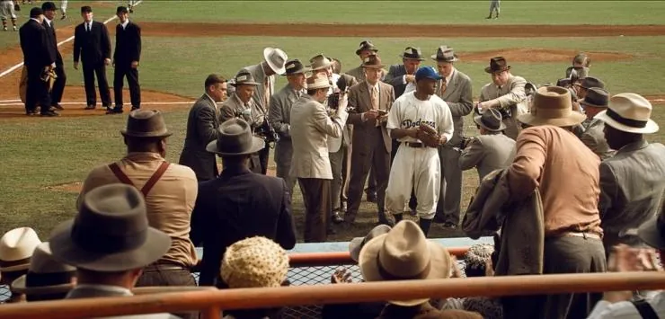 Фильм 42 2013 раскрывает историю в сюжетной линии как Фильм посвящен тому, как Брэнч Рики и Джеки Робинсон уничтожили сегрегацию в бейсболе в 1947 году....